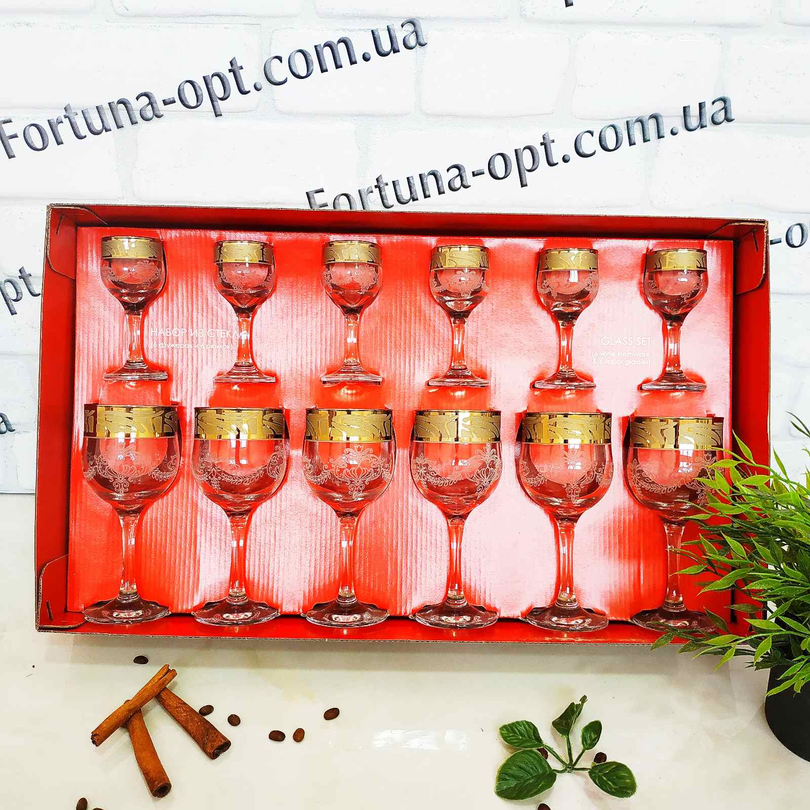 Набор мускат 05-163/164. Бокал для вина 240 мл + рюмка 60 мл, 12 шт/наб, декор "Греческий узор" . Производитель: Гусь хрустальный.Технология: гравировка, напыление под золото. Купить набор, бокалы, фужеры, рюмки вы всегда сможете у нас на сайте: fortuna-opt.com.ua по самым низким ценам производителя.
