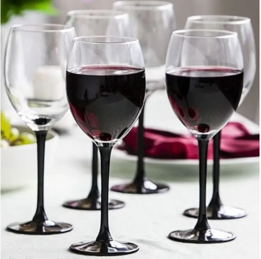 В наборе 6 штук. Материал: стекло. Объем одного бокала: 350 мл. Цвет ножки: черный.