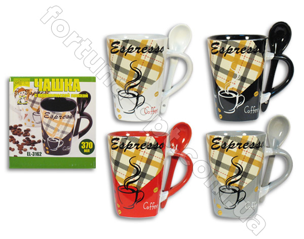 Чашка керамическая с ложкой. Объем: 370 мл.Каждая кружка упакована в индивидуальную подарочную коробку. Яркая цветовая гамма; 1 сорт; 4 расцветки. Посуда изготовлена из керамики, отличается высокой механической прочностью, при производстве используются только природные экологически чистые и безопасные материалы. Посуду можно использовать для разогрева бульонов, напитков в микроволновой печи и духовке. В ней любая еда приобретает насыщенный вкус и дольше хранится. Купить чашку керамическую, чашку стеклянную вы всегда можете у нас на сайте fortuna-opt.com.ua по самым низким ценам.