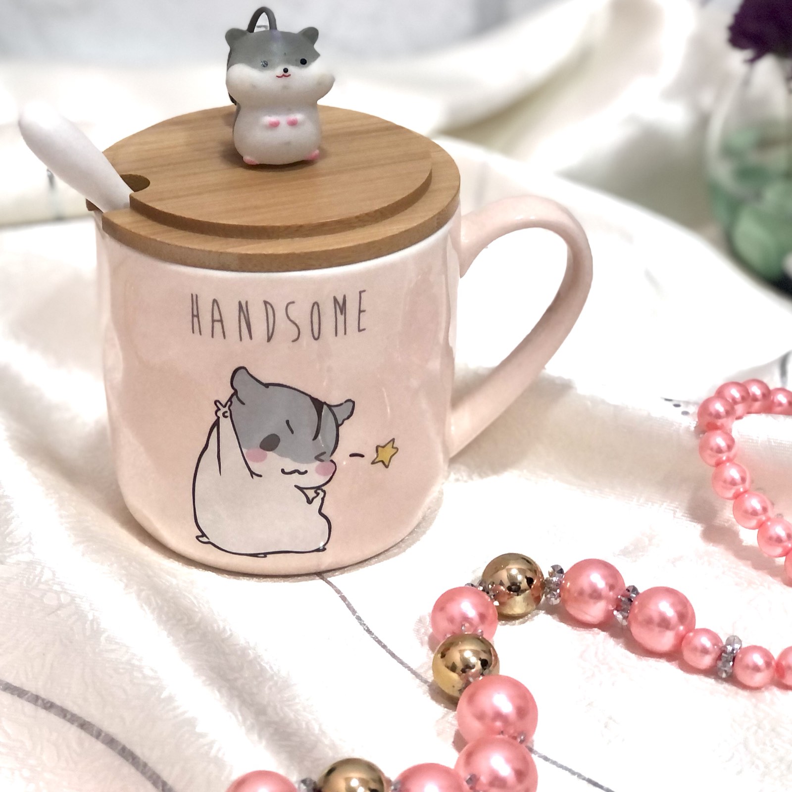 Чашка из керамики с крышкой и ложкой объемом 400 мл. На крышке яркая сказочная фигурка.