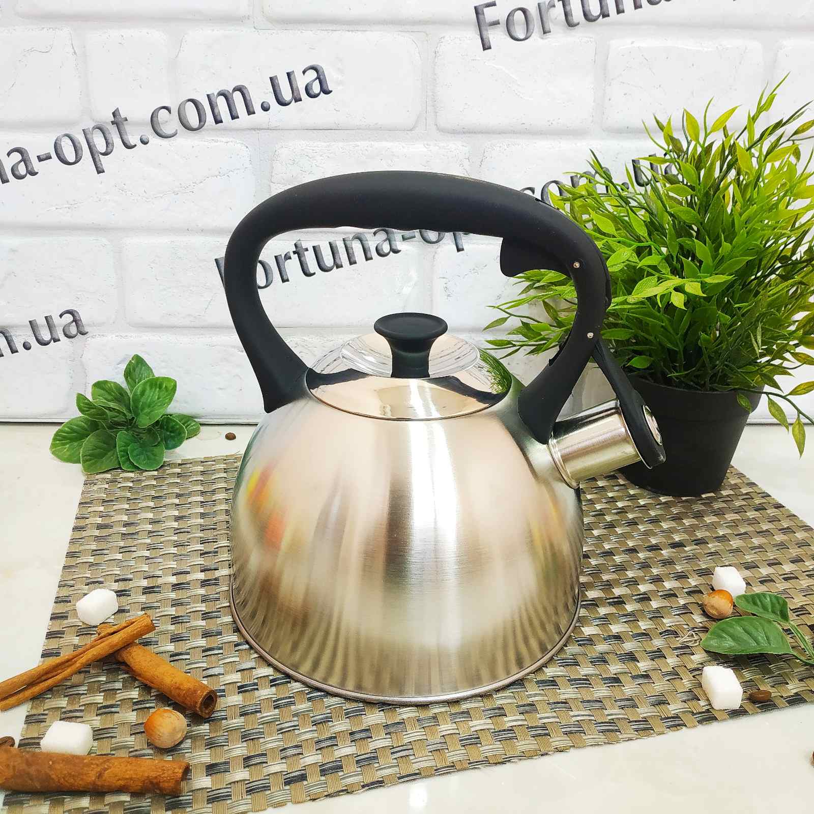 Чайник 041560 нержавеющий со свистком и рычагом для безопасного открывания и закрывания ТМ А-Плюс. Объем 2,1 литра. Чайник 041560 изготовлен из высококачественной нержавеющей стали с индукционным дном. Бакелитовая не нагревающаяся фиксированная ручка. Крышка чайника стальная с бакелитовой ручкой.Особенности нержавеющего чайника со свистком A-Plus - 041560