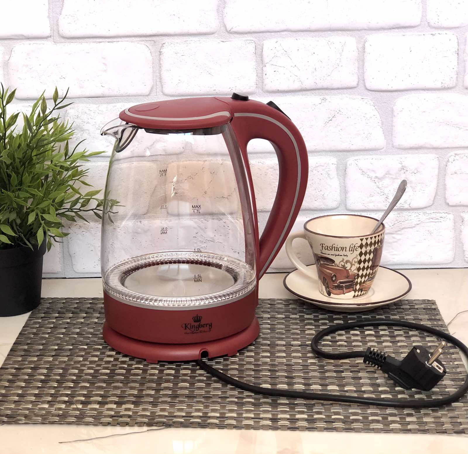 Электрочайник Kingberg удивит своей функциональностью и оригинальным дизайном. Электрический чайник надежно и быстро справляется со своей основной задачей. Нагревательный элемент выполнен из нержавеющей стали и имеет закрытый тип. Данная модель электрочайника может вращаться на 360 градусов на своем цоколе и оснащена световой индикацией работы, а корпус устойчив к воздействию высоких температур. Корпус изготовлен из стекла высокого качества. Модель чайника имеет удобную форму ручки, мерную шкалу уровня воды.Характеристика электрочайника Kingberg 2029