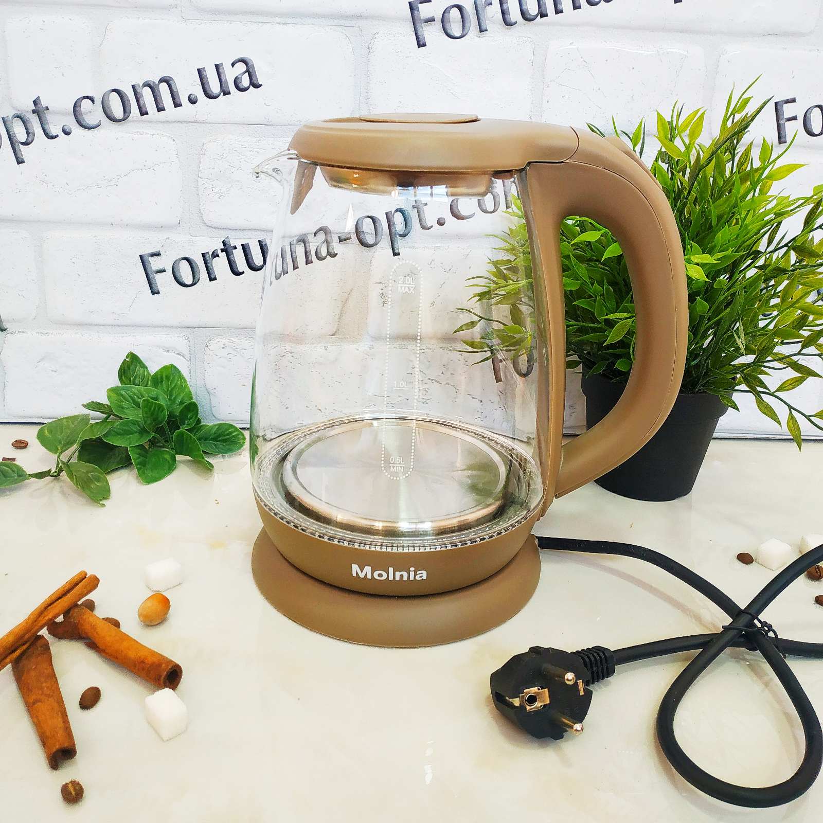 Электрический чайник имеет объем 2 литра, которого достаточно, чтобы напоить ароматным чаем или кофе всю семью. Данная модель электрочайника может вращаться на 360 градусов на своем цоколе и оснащена световой индикацией работы. Чайник выполнен из высококачественного стекла, устойчивого к высоким температурам, а нагревательный элемент закрытого типа сделан из нержавейки. При закипании воды, чайник отключается автоматически.Особенности электрочайника с мерной шкалой A-Plus - 2136
