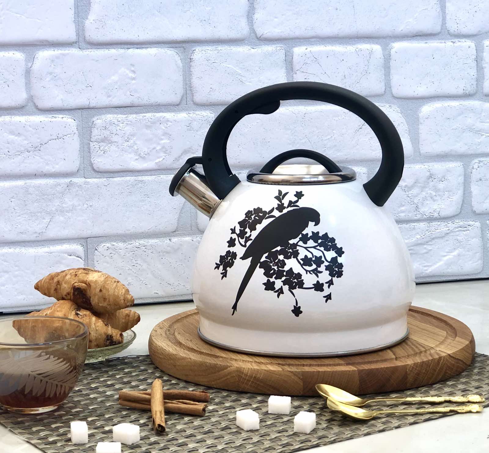 Чайник 1388 изготовлен из нержавеющей стали высокого качества и имеет двойное дно, благодаря чему нагрев происходит равномерно и долго сохраняется. Оснащен светящимся температурным индикатором. Также у чайника есть свисток, который дает понять, что вода закипела. С помощью удобного механизма легко и безопасно открывается свисток. Имеет современный дизайн. Подходит для использования на всех видах плит.Особенности чайника со свистком A-Plus - 1388