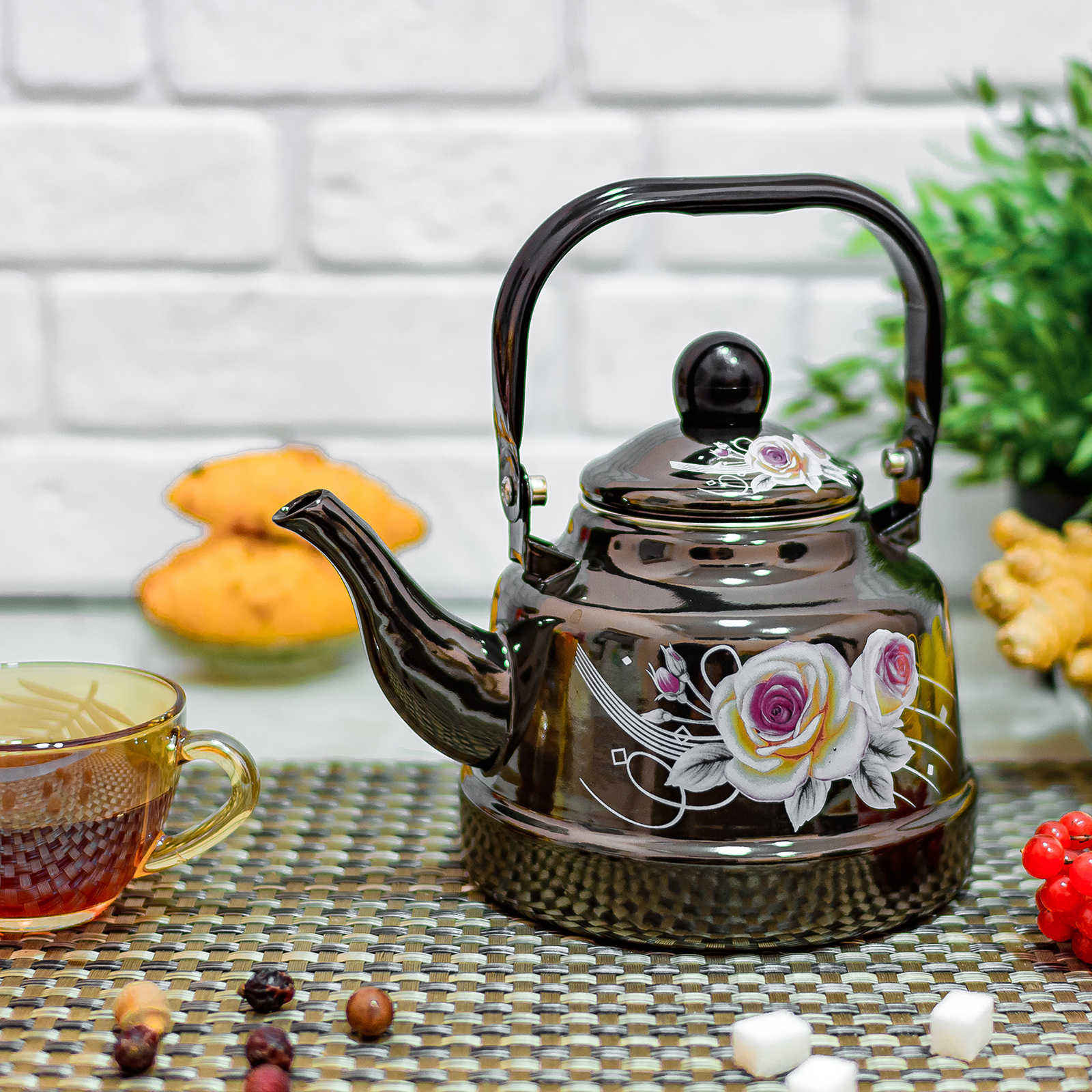 Темный чайник из эмали с красивыми цветами Benson - 105 имеет объем 1,7 литра. Эмаль - экологический материал, поэтому вода в чайнике сохраняет свои свойства и вкус. Чайник подходит для использования на всех видах плит, в том числе и на индукционной.Характеристики эмалированного чайника Benson BN - 105