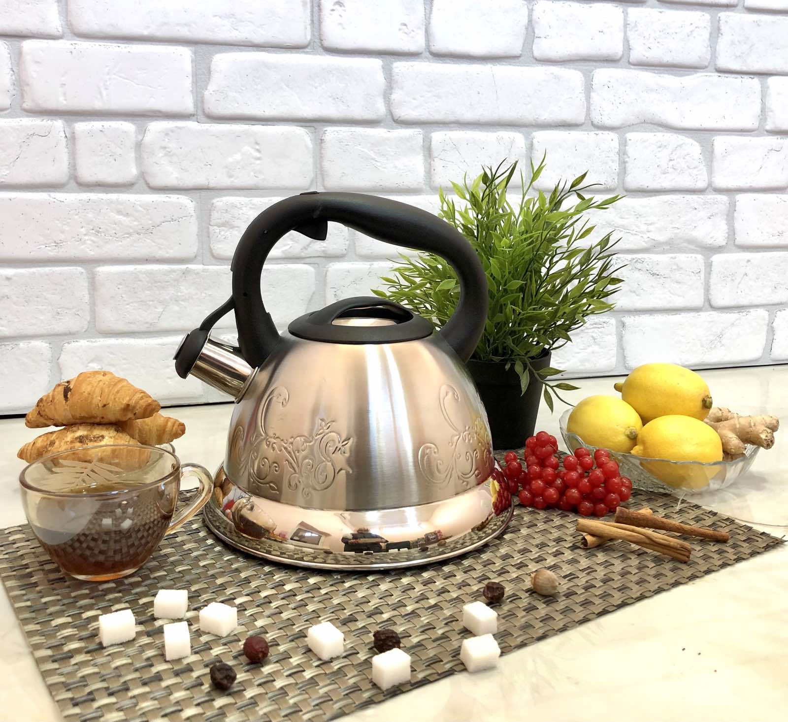 Чайник 1235 нержавеющий со свистком и рычагом для безопасного открывания/закрывания ТМ А-Плюс. Объем 3 литра. Чайник 1235 изготовлен из высококачественной нержавеющей стали, имеет алюминиевую пластину на днище, благодаря чему нагрев происходит равномерно и долго сохраняется. Матовая полировка поверхности с зеркальной полосой внизу изделия. Бакелитовая не нагревающаяся ручка, бакелитовый ободок и ручка на стальной крышке. Если вы ищете хороший чайник в дешевом ценовом сегменте, то чайник 1235 А-Плюс как раз то, что вам необходимо.Особенности чайника нержавеющего A-Plus - 1235
