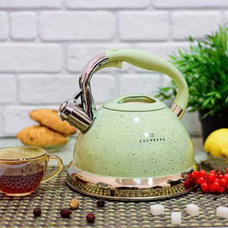 Это уникальный и удобный в использовании чайник от фирмы Edenberg, который поможет за считанные минуты приготовит ароматный чай или кофе. Изделие изготовлено из высококачественной и безопасной для здоровья нержавеющей стали, которая не будет влиять на вкус воды. Закипание сопровождается звуковым сигналом, так как носик чайника имеет насадку-свисток, что позволяет контролировать процесс кипячения воды. Специальный механизм позволяет легко и удобно открывать насадку-свисток одним нажатием кнопки. Ручка из бакелита не нагревается и приятно ложится в руку.Особенности нержавеющего чайника Edenberg EB - 1955