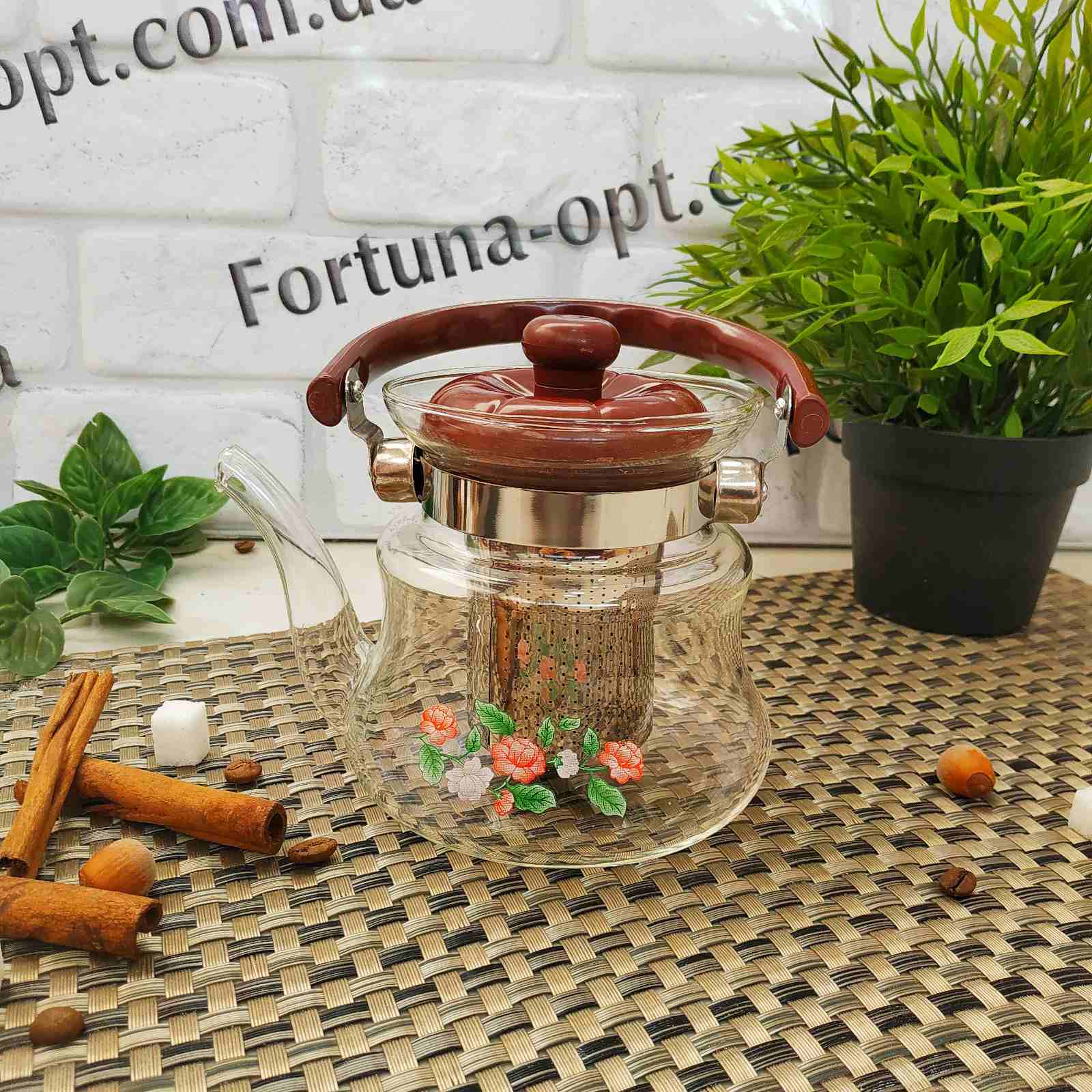 Заварочный чайник с цветочным принтом A-Plus - 1039 - 600 мл