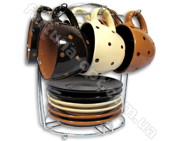 Чайный набор на стойке 12 пр (250мл) 2112. Во время обжига в глине происходят необратимые процессы, во время которых происходит разложение одних веществ и образование других, а также испаряется влага, в результате чего глина искусственным силикатом, или просто керамикой. Керамика обладает прочностью, твердостью, противостоит огню, воде и различным химическим веществам. Для повышения прочности и твердости производители могут добавлять в керамику различные минеральные вещества. Купить чашку, тарелки, наборы тарелок и многое другое вы всегда можете у нас на сайте fortuna-opt.com.ua по самым низким ценам производителя.