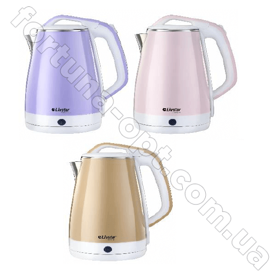 Электрический чайник объемом 1,8 литра. Диск удобный и не скользит по гладкой поверхности. Есть возможность вращать чайник на 360 градусов. Электрический чайник выполнен в пластиковом корпусе, который легко очищается с помощью влажной губки и имеет хорошие защитные свойства от царапин и деформаций. Он безопасен в работе, так как оснащен функциями защиты от перегрева и автовыключения после закипания. Электрочайник 1119 в трех цветах - фиолетовый, розовый, кремовый. Купить электрочайник 1,8 литра можно всегда на нашем сайте https://fortuna-opt.com.ua/catalog/bytovaya_tekhnika/tekhnika_dlya_kukhni/elektrochayniki/filter/oby...Характеристика электрочайника Livstar LSU - 1119