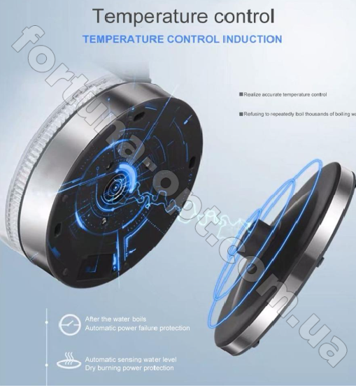 - Возможность вращения чайника на подставке на 360 градусов.