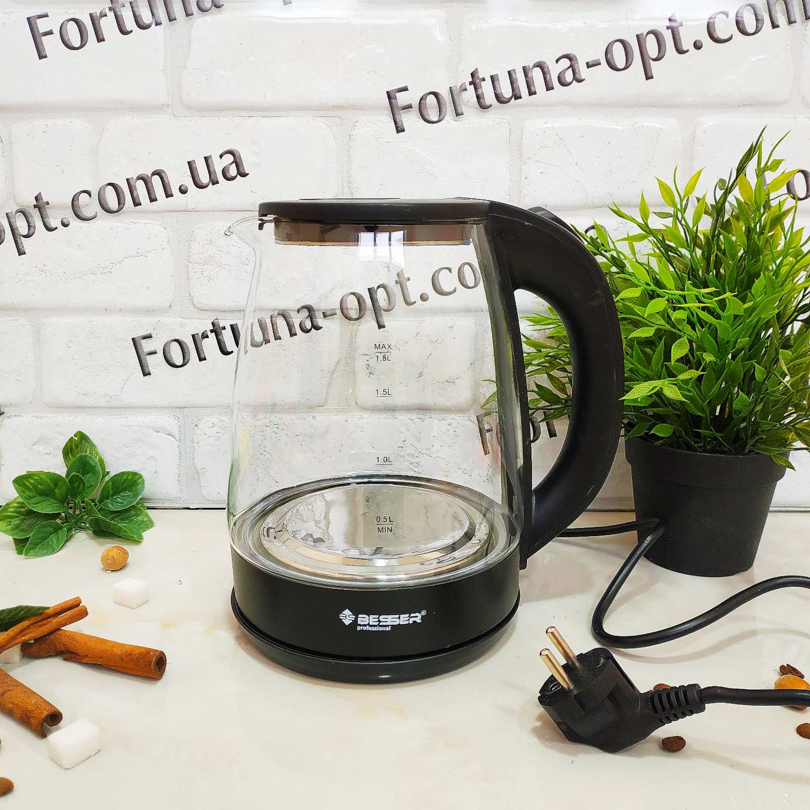 Выполнен из термостойкого стекла, объем - 1,8 литра.