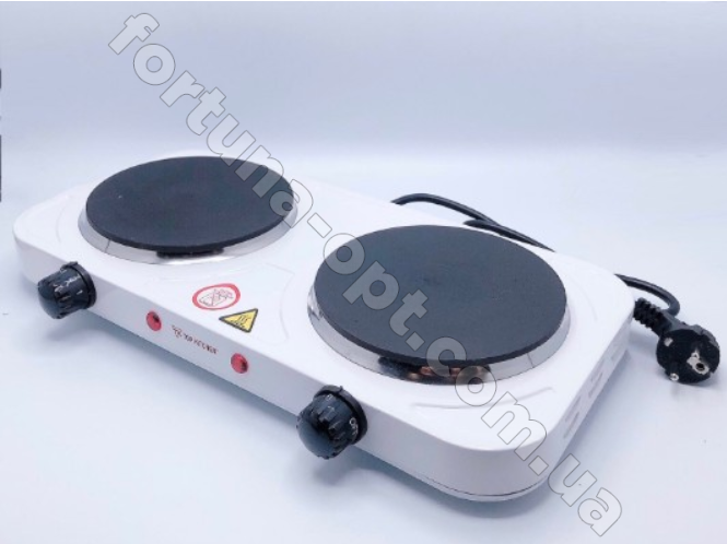 Электроплита двухконфорочная диск TK - 0004 имеет простое и надежное механическое управление. Преимущества плитки в её размерах, она поместится на абсолютно любой кухне. Электроплита с двумя конфорками TK - 0004 белого цвета имеет классический дизайн, поверхность эмалированная. Нагревательный элемент - 2. Имеет защиту от перегрева. Мощность - 2000 Вт. В упаковке есть инструкция по применению и советы к готовке. Резиновые ножки идут в комплекте, при необходимости они вынимаются, не дают плитке скользить по горизонтальной поверхности. Купить электрическая плита с двумя конфорками по лучшей цене можно на сайте fortuna-opt.com.ua.Особенности электроплиты Top Kitchen TK - 0004