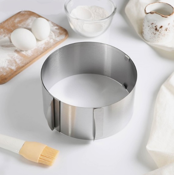 - Простота использования: Раздвижная конструкция обеспечивает легкое извлечение приготовленного торта. Вы сможете легко снять кольцо формы, не повреждая бока своего творения, благодаря чему презентация тортов станет исключительно эстетичной.