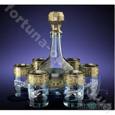 Графин 0,5л +6 стопок 60мл, декор "Греческий узор" . Производитель: Гусь хрустальный.Технология: гравировка, напыление под золото. Бокалы, фужеры,рюмки вы всегда сможете приобрести у нас на сайте: fortuna-opt.com.ua по самым низким ценам производителя.