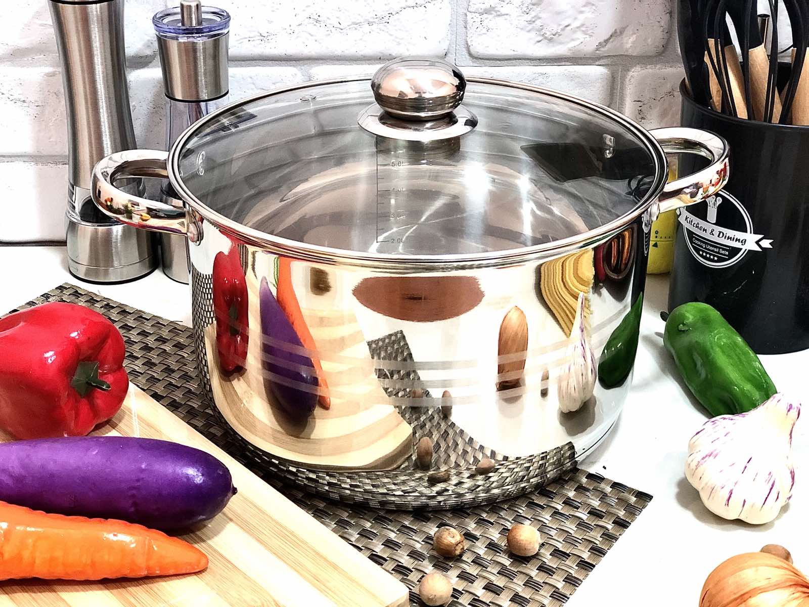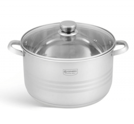 Кастрюля объемом 12,4 л из нержавеющей стали, имеет оригинальный дизайн, пятислойное дно, легка в уходе, отличается высокой эффективностью. Многослойное дно прогревается быстро и позволяет качественно приготовить пищу. Стеклянная крышка с отверстием для выхода пара, ручки из нержавеющей стали остаются прохладными даже при длительном приготовлении пищи. Подходит для всех современных видов плит, включая индукционную. Современный и практичный дизайн гарантирует качество и функциональность на долгие годы. Подходит для мытья в посудомоечной машине. Спешите купить!!!Особенности кастрюли с крышкой Edenberg EB - 3020