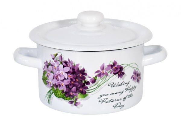 Кастрюля 242 "Виола" изготовлена из эмалированной стали и имеет цилиндрическую форму. Объем кастрюли 2 л. Ее можно использовать на газовой, электрической, стеклокерамической и индукционной плите.Характеристики кастрюли из эмали "242" Виола 2 литра