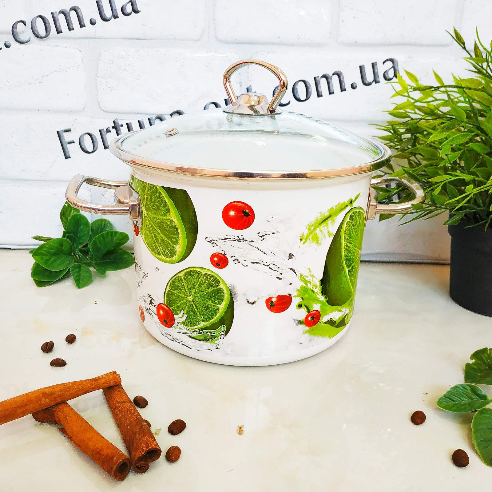 Кастрюля эмалированная 3 л 83112 Лайм. Цилиндрическая с нержавеющим ободком и импортной фурнитурой. Производитель - ООО "Новомосковская посуда". Кастрюля изготовлена из высококачественного стального проката и покрыта двумя слоями жаропрочной эмали. Эмалевое покрытие надежно защищает пищу от контакта с металлом, оно инертно и устойчиво к пищевым кислотам, не вступает во взаимодействие с продуктами и не искажает их вкусовые качества. Наборы кастрюль,миски, кружки, ковши, кастрюли вы всегда можете приобрести у нас на сайте fortuna-opt.com.ua по самым низким ценам производителя.