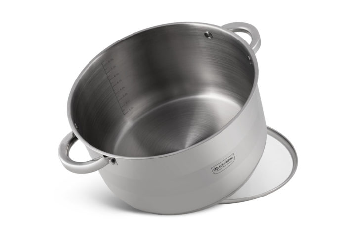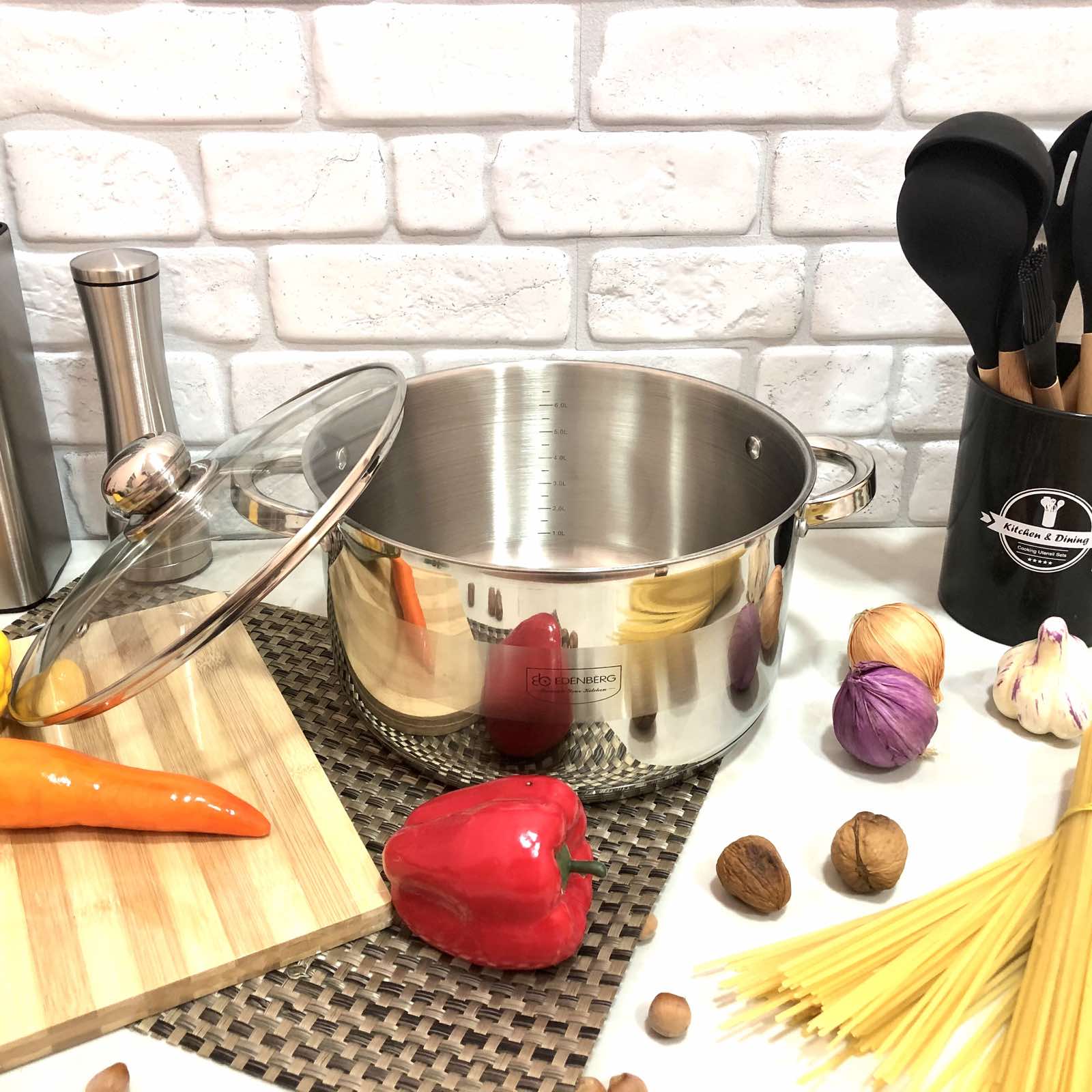 Большая кастрюля объемом 8,5 л из нержавеющей стали, имеет оригинальный дизайн, семислойное дно, легка в уходе, отличается высокой эффективностью. Многослойное дно прогревается быстро и позволяет качественно приготовить пищу. Стеклянная крышка с отверстием для выхода пара, ручки из нержавеющей стали остаются прохладными даже при длительном приготовлении пищи. Подходит для всех современных видов плит, включая индукционную. Современный и практичный дизайн гарантирует качество и функциональность на долгие годы. Подходит для мытья в посудомоечной машине. Спешите купить!!!