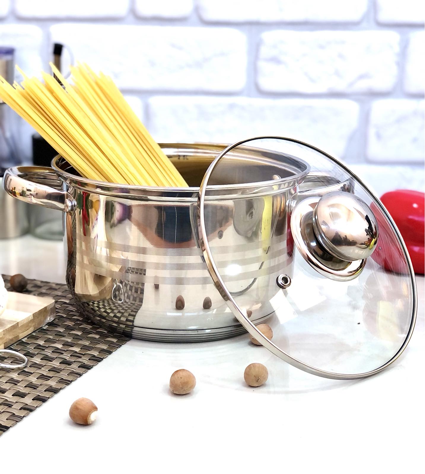 Объем - 2,9 л, изготовлена из нержавеющей стали, имеет привлекательный вид, легка в уходе. Обладает многослойным капсульным дном, благодаря которому тепло распределяется равномерно по всей поверхности кастрюли. Стенки кастрюли A-Plus - 2166 толщиной 0,5 мм, стеклянная крышка с отверстием для выхода пара. Ручки из нержавеющей стали остаются прохладными даже при длительном приготовлении пищи, обладают высокой износоустойчивостью. Кастрюля A-Plus - 2166 подходит для всех источников тепла: газовой, индукционной, керамической, электрической плитам. Современный и практичный дизайн гарантирует качество и функциональность на долгие годы. Подходит для мытья в посудомоечной машине.