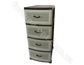 Представляем вам большой комод из пластика с четырьмя выдвижными секциями, идеальное решение для хранения ваших вещей. Этот комод обладает стильным и современным дизайном, который отлично впишется в любой интерьер.
