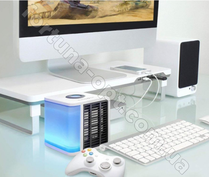 превращает холодную воду через специальный фильтр в прохладный и чистый воздух. Устройство увлажняет, охлаждает и даже очищает ваше личное пространство для дыхания, чтобы Вы могли свободно дышать. Без химических или токсичных охлаждающих веществ, мини-кондиционер берет обычную воду, которую поглощает через специальный фильтр, а затем с помощью специальной технологии превращает горячий сухой воздух на прохладный, влажный и чистый!Мини-кондиционер Arctic Air - 5289 нельзя сравнивать с профессиональными кондиционерами ни по их характеристики, ни по ценовой политике.