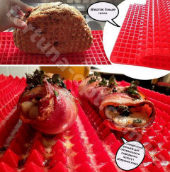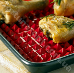 - Уникальная поверхность: Этот коврик обладает оригинальной поверхностью в виде пирамид, которая позволяет равномерно распределить жир и масло, выделяющиеся из продуктов во время запекания. Благодаря этой особенности, ваше блюдо станет нежным внутри и хрустящим снаружи.