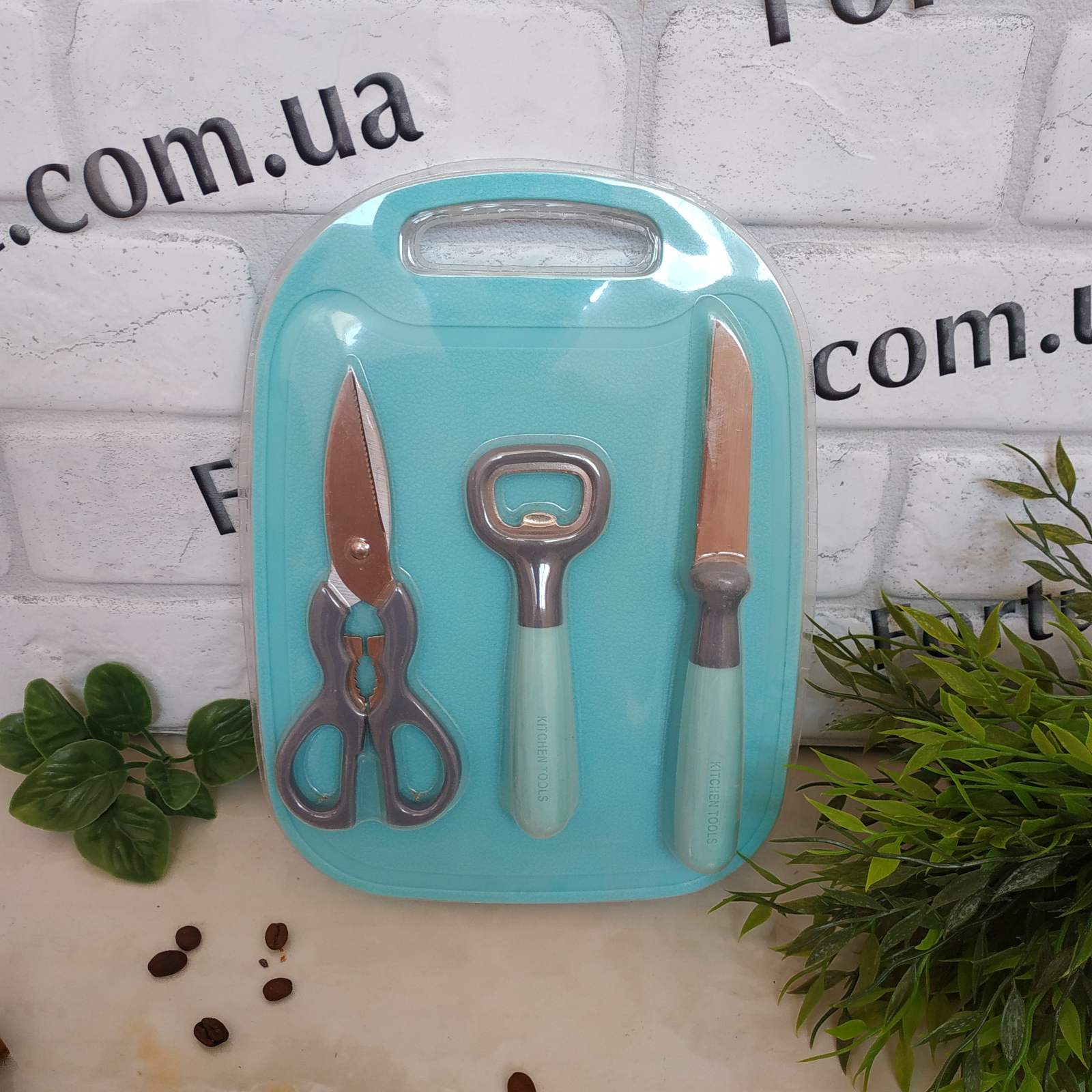Набор кухонный из 4-х предметов: нож, ножницы, открывалка для бутылок и разделочная доска, будет великолепным приобретением для любой хозяйки. Лезвия из качественной стали отличаются превосходными режущими характеристиками. Практичные рукоятки из специального силикона удобно лежат в руке и не скользят. Легко моется, практичен и удобен в использовании.Можно смело использовать набор в качестве подарка.