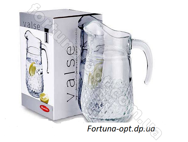 Кувшин Вальс 1.25 л 43474 производства Pasabahce (Турция), несомненно подойдет для любых напитков. Изготовлен из прочного стекла, подходит для мытья в посудомоечной машине. Купить кувшин для воды, стаканы стеклянные, рюмки, бокалы под шампанское, бокалы для вина, салатники стеклянные вы можете у нас на сайте Fortuna-opt.com.ua