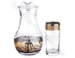 Кувшин для воды 1л +6 стаканов 290мл, декор "Мускат" . Производитель: Гусь хрустальный.Технология: гравировка, напыление под золото. Бокалы, фужеры,рюмки вы всегда сможете приобрести у нас на сайте: fortuna-opt.com.ua по самым низким ценам производителя.