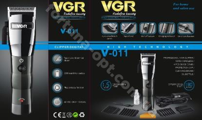 Профессиональная Машинка Для Стрижки Волос, Основная Часть Корпуса Металлическая. Мощный LI-ION Аккумулятор. Работает Как С Шнуром,Так И Без. Шнур 2,5м. В Комплекте Зарядное Устройство И 4 Насадки Время Работы До180 МинутВремя Зарядки До 1,5 ЧасовМарка: VGR