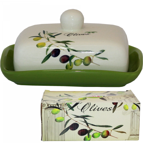 Масленка "Оливки" изготовлена из керамики и имеет размер 13 х 17 см, высота - 5,5 см.