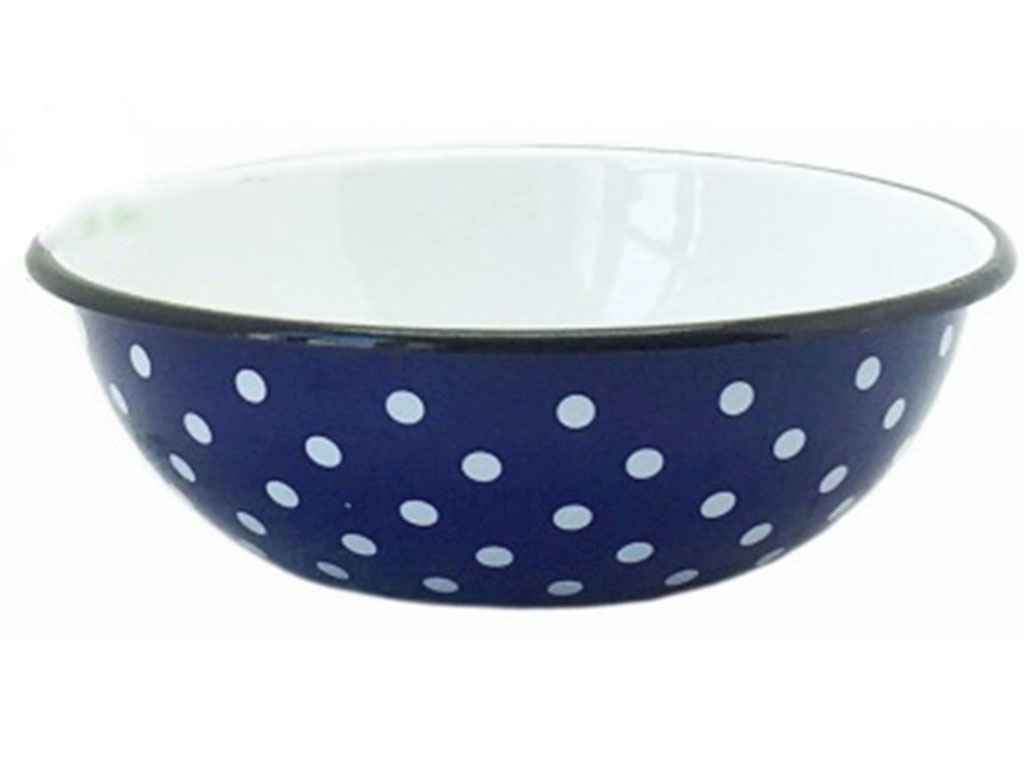 Миска эмалированная "Синяя полька" объемом 600 мл. Толщина стенок - 0,7 мм, диаметр - 150 мм, высота - 55 мм. Дно покрыто эмалью с повышенной термоотдачей. Вода быстро нагревается и остается теплой долгое время. Подходит для газовых и электрических плит.