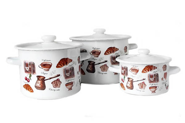Набор эмалированных кастрюль "242" Кафе де Шери (белый)