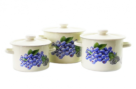 Набор эмалированных кастрюль "262" Голубика молочная