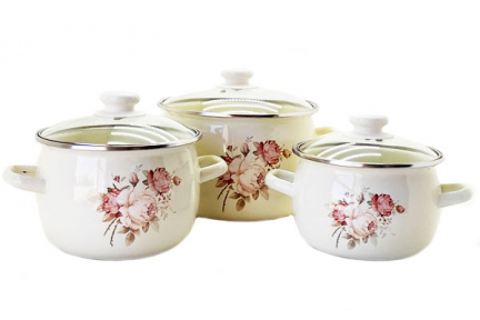 Набор эмалированных кастрюль "6928" Розовые цветы