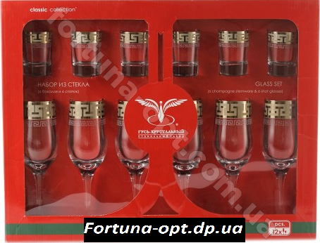 Бокал под шампанское 240 мл + стопка 60 мл/6 шт (Едем) декор "Греческий узор" 03-163/837. Производитель: Гусь хрустальный. Бокалы, фужеры,рюмки вы всегда сможете приобрести у нас на сайте: fortuna-opt.com.ua по самым низким ценам производителя.