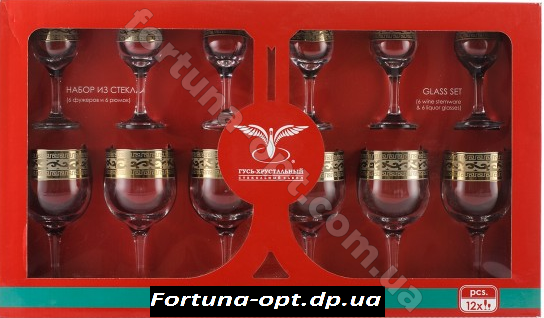 Набор бокалов для вина 240 мл + рюмка 60 мл , декор "Версаче" . Производитель: Гусь хрустальный.Технология: гравировка, напыление под золото. Подарочная упаковка. Бокалы, фужеры,рюмки вы всегда сможете приобрести у нас на сайте: fortuna-opt.com.ua по самым низким ценам производителя.