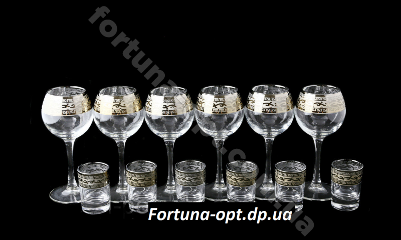 Набор бокалов для вина 240 мл + стопка 60 мл , декор "Версаче" . Производитель: Гусь хрустальный.Технология: гравировка, напыление под золото. Подарочная упаковка. Бокалы, фужеры,рюмки вы всегда сможете приобрести у нас на сайте: fortuna-opt.com.ua по самым низким ценам производителя.