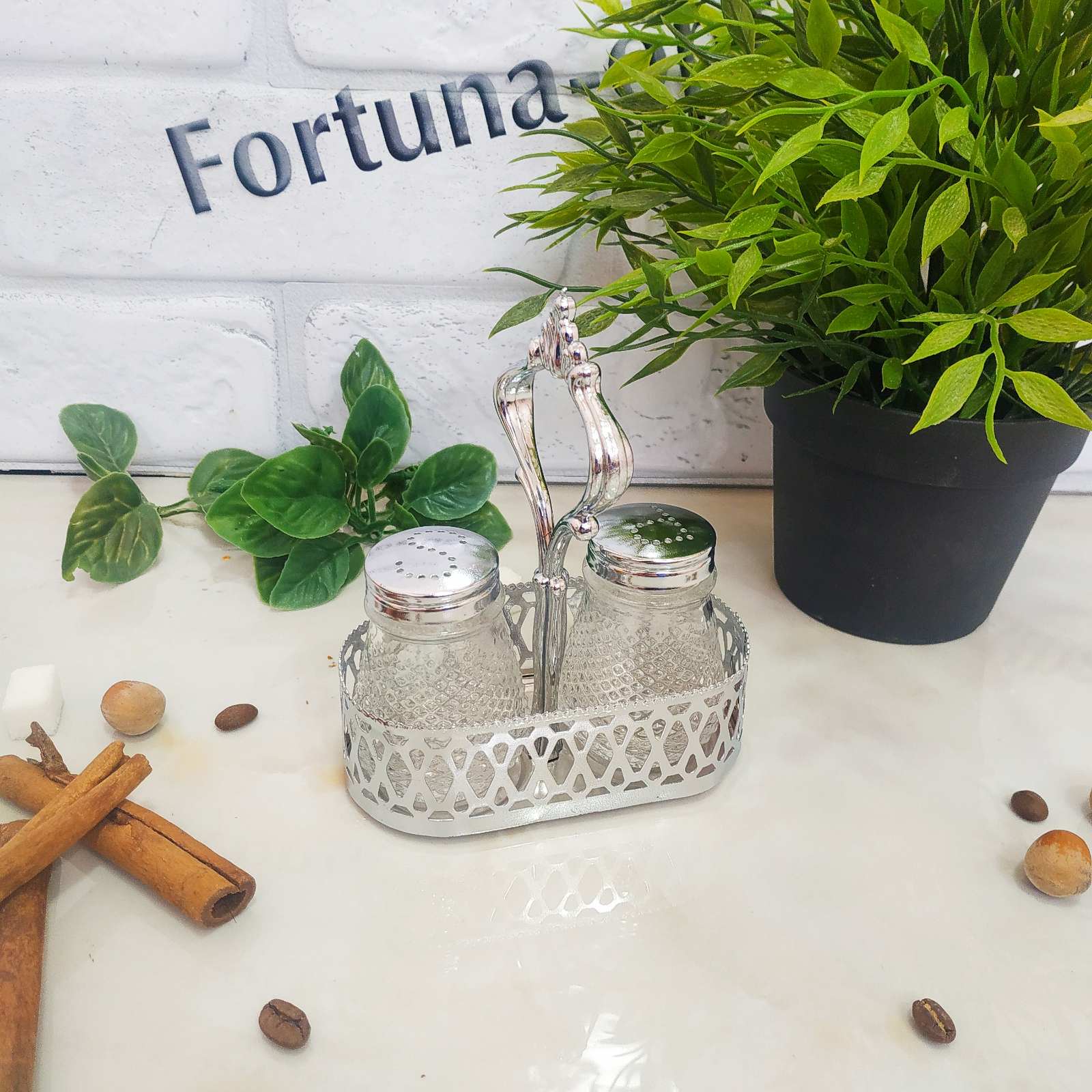 Набор для специй А-Плюс 1701 состоит из двух стеклянных емкостей для перца и соли . Подставка из металла изготовлена с оригинальным резным узором.Характеристики набора для специй A-Plus - 1701