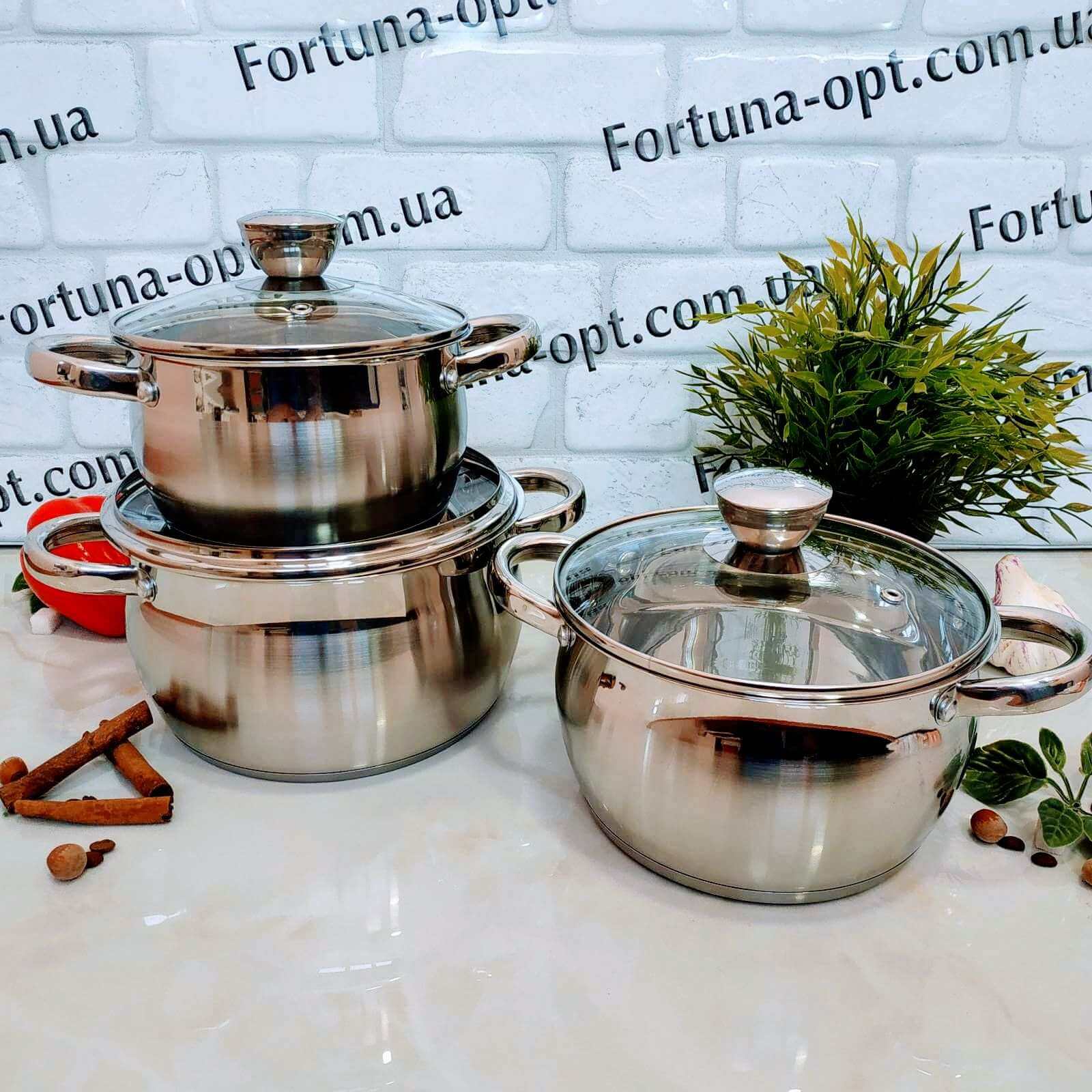 Набор кастрюль A-Plus - 2182 изготовлен из высококачественной нержавеющей стали, обладающей исключительными антикоррозионными свойствами, благодаря чему кастрюли ТМ А-Плюс не портятся долго, сохраняя прекрасный первоначальный внешний вид. Кастрюли с утолщенным, многослойным дном капсульного типа. Главное преимущество - долговечность! Это действительно тот вариант, когда соотношение качества превосходит ценовую политику! Нержавеющие клепанные ручки не нагреваются, серебряного цвета. Набор подходит для всех источников тепла, включая индукционные плиты. Прозрачные крышки – термостойкое стекло с отверстием для выхода пара. Можно мыть в посудомоечной машине. Легко чистится.Особенности набора посуды A-Plus - 2182