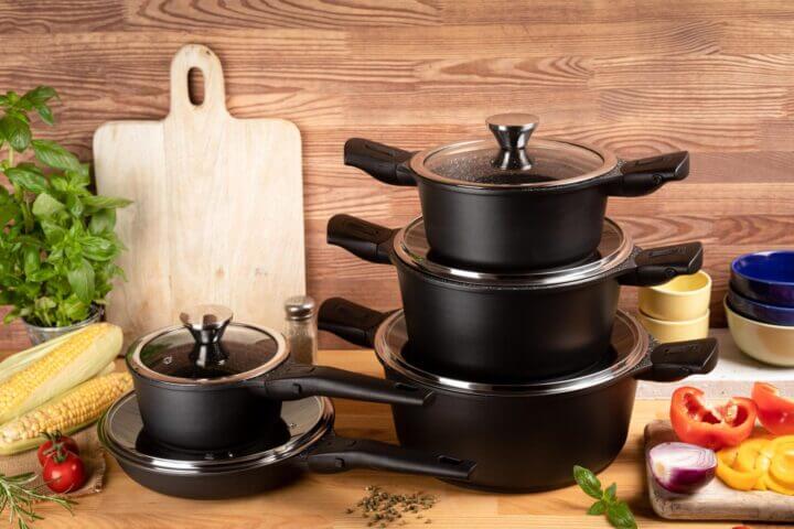 3 кастрюль, + Ковш, + Сковорода |
