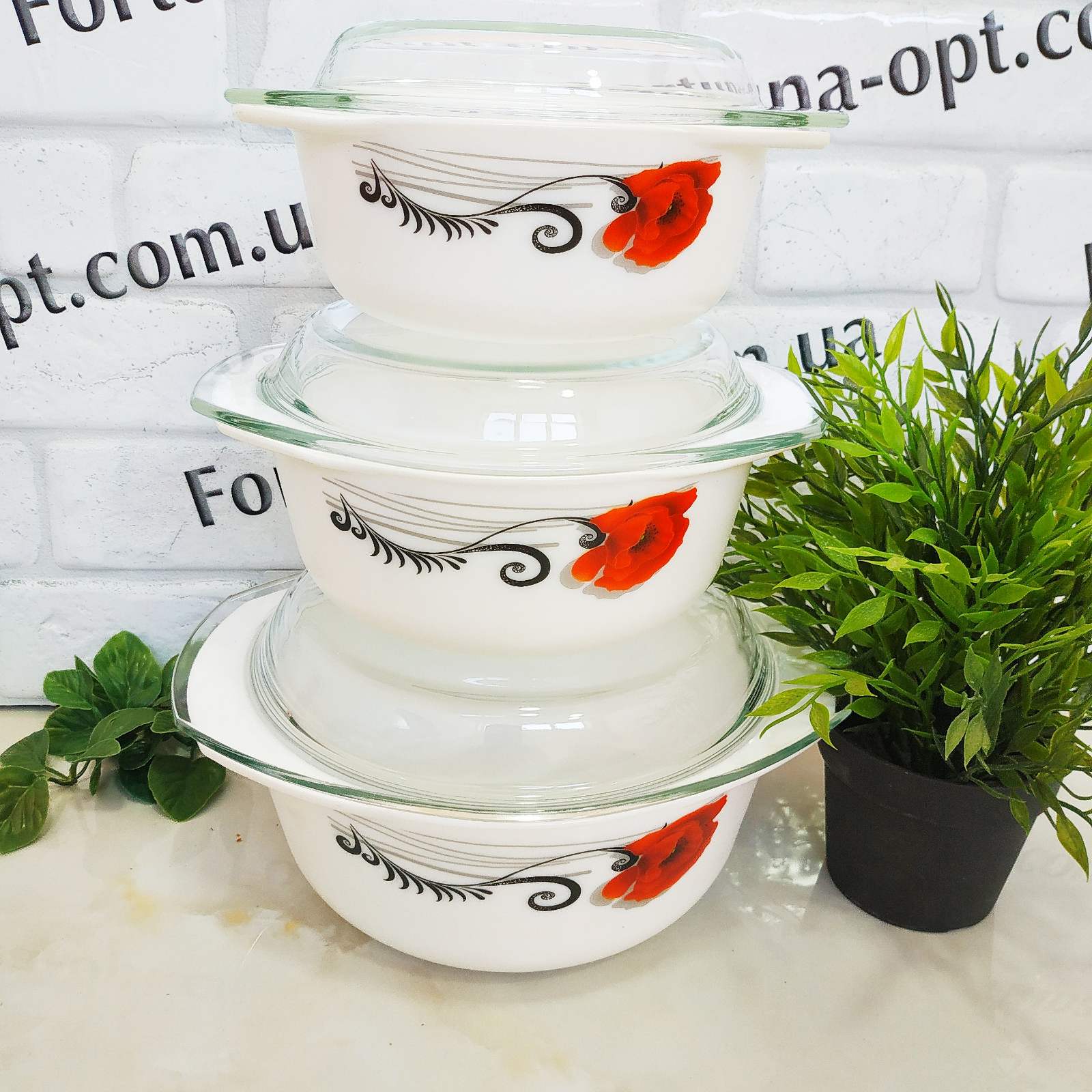 Набор стеклянных кастрюль с крышками 1864 (3 шт) A-Plus. Объем: 1; 1,5; 2,5 л. Изготовлен из закаленного боросиликатного стекла. Поверхность глянцевая, устойчивая к механическим и химическим воздействиям. Не впитывает посторонние запахи. На внешней стороне кастрюли нанесен цветочный орнамент. Крышка изготовлена из прозрачного стекла. Купить наборы кастрюль недорого вы можете у нас на сайте: fortuna-opt.com.ua