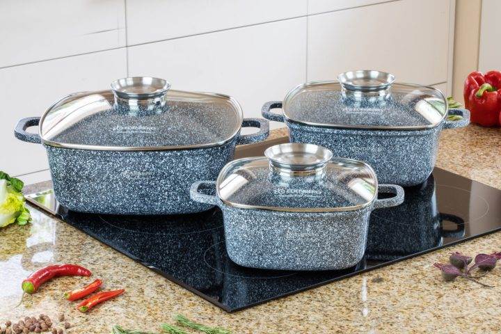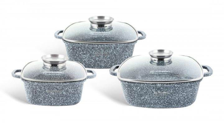 В комплект набора посуды Edenberg EB - 8030 входит 3 мраморные кастрюли. Трехслойное антипригарное мраморное покрытие предотвращает пригорание, благодаря чему не влияет на вкус и запах пищи. Этот качественный набор не содержит вредные вещества в своём составе и позволяет готовить пищу с минимальным количеством масла. Идеально для приготовления низкокалорийной, диетической еды. Подходит для всех видов плит, включая индукцию. Можно мыть в посудомоечной машине.