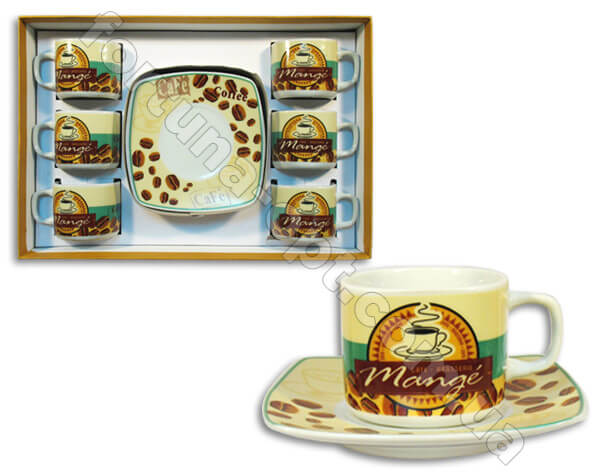 Набор кофейный 5021. Во время обжига в глине происходят необратимые процессы, во время которых происходит разложение одних веществ и образование других, а также испаряется влага, в результате чего глина искусственным силикатом, или просто керамикой. Керамика обладает прочностью, твердостью, противостоит огню, воде и различным химическим веществам. Для повышения прочности и твердости производители могут добавлять в керамику различные минеральные вещества. Купить чашку, тарелки, наборы тарелок и многое другое вы всегда можете у нас на сайте fortuna-opt.com.ua по самым низким ценам производителя.