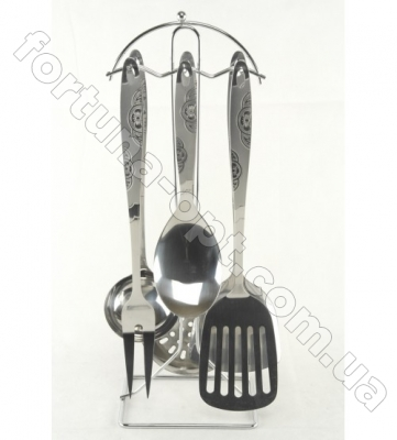 Кухонный набор (7 предметов) из нержавеющей стали: ложка кухонная, лопатка, шумовка, половник, вилка кухонная, лопатка сервировочная, подставка с крючками ТМ Посуда А-Плюс. Если вы ищете нержавеющую посуду в дешевом ценовом сегменте, то посуда А-Плюс как раз то, что вам необходимо. Компания Фортуна предлагает посуду А-Плюс оптом, посуда А-Плюс оптом на самых выгодных условиях в ее полном ассортименте: решетки для гриля А-Плюс, ведра нержавеющие А-Плюс, противни для выпечки А-Плюс, формы для выпечки А-Плюс, наборы кастрюль А-Плюс, термоса А-Плюс, сковородки А-Плюс, чайники А-Плюс, дуршлаги А-Плюс, миски нержавеющие А-Плюс, сита А-Плюс, электротовары А-Плюс на сайте: Fortuna-opt.com.ua
