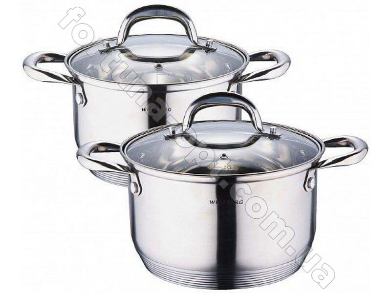 Набор кастрюль Wellberg WB - 1076 состоит из 4 предметов - двух кастрюль и двух крышек, которые предназначены для варки и тушений различных горячих блюд. Кастрюли этого набора очень практичны и долговечны. Крышки кастрюль изготовлены из закаленного стекла и имеют специальное отверстие для отвода пара. Кастрюли изготовлены из высококачественной нержавеющей стали 18/10 и имеют пятислойное капсульное дно, что позволяет их использовать на всех видах плит.Особенности набора посуды Wellberg WB - 1076
