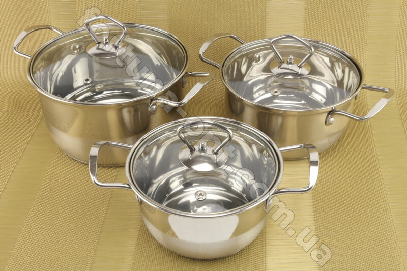 Данный набор посуды включает в себя три кастрюли разного размера и крышки для них. Изделия сделаны из безопасной для здоровья и прочной нержавеющей стали, которая отвечает всем мировым требованиям качества. Трехслойное капсульное дно прогревается за считанные минуты, равномерно распределяя тепло, благодаря чему пища готовится качественно. Нержавеющие ручки помогут быстро снять посуду с огня. После эксплуатации кастрюли легко очищаются под горячей водой. Также их можно отправить в посудомоечную машину.