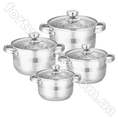 Набор посуды Edenberg EB - 3708 имеет стильный дизайн, термоаккумулирующее семислойное дно, благодаря которому тепло внутри кастрюли распределяется равномерно по всей её поверхности, что в свою очередь препятствует подгоранию пищи. Набор кастрюль выполнен из качественной нержавеющей стали, которая легка в уходе, а также обладает высокой износоустойчивостью. Удобные клепанные ручки из нержавеющей стали не нагреваются, стеклянные крышки с пароотводом. Подходит для всех типов плит, включая индукцию.Особенности набора посуды Edenberg EB - 3708