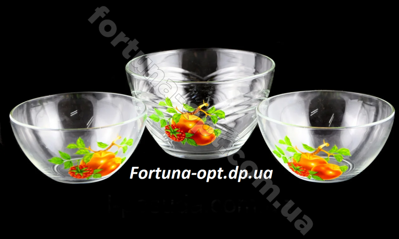 Набор салатников 1 большой и 2 маленьких. Упаковка: цветная упаковка. Материал: стекло. Декор: фрукты и цветы. В наборе 3 штуки. Стеклянная посуда, бокалы для вина, фужеры, бокалы под шампанское, салатники стеклянные, чашки стеклянные, менажницы, блюда, все для сервировки стола, стопки, рюмки, набор стаканов - все это вы найдете на нашем сайте: Fortuna-opt.com.ua